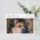 Elegant Script Watercolor Greenery Bröllop Photo Tack Kort