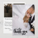 Share the romance of your special day with a bold yet elegant finish. This design features a stunning full-bleed layout that places your favorite wedding photography front and center, overlaid with hand-lettered brush calligraphy and decorative heart flourishes. Ideally suited for modern couples, the jet black ink against the soft photo background creates a chic, high-contrast look that makes your message of gratitude truly memorable.