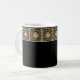 This handsome mug features a bold border of Spanish tiles in warm gray brown tones on an intense black background. Perfect for more a masculine decor.
