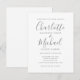 Med signaturstilnamn kan detta eleganta grå och vita bröllopsinbjudningskort anpassas med din information i chic grå bokstäver. Designad av Thisisnotme©