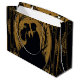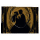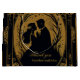 Elegant silhuett av en brud och groom omgiven av ornatsnurrar och prydnadsföremål. Utformningen görs i en lyxig kombination av guld och svart, som utstrålar elegans och sofistikering. De invecklade detaljerna kring inbjudan till en romantisk och klasslig beröring, ge.