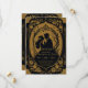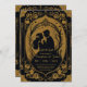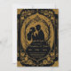 Elegant silhuett av en brud och groom omgiven av ornatsnurrar och prydnadsföremål. Utformningen görs i en lyxig kombination av guld och svart, som utstrålar elegans och sofistikering. De invecklade detaljerna kring inbjudan till en romantisk och klasslig beröring, ge.