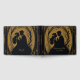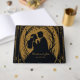 Elegant silhuett av en brud och groom omgiven av ornatsnurrar och prydnadsföremål. Utformningen görs i en lyxig kombination av guld och svart, som utstrålar elegans och sofistikering. De invecklade detaljerna kring inbjudan till en romantisk och klasslig beröring, ge.
