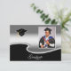 An elegant graduation party invitation with a silver-like appearance. The silver and black sections on the front are separated by a unique, curved border. The smaller size of this card means you can use it as an enclosure with announcement cards. Include it only for people you wish to invite to the party. The photo and all text are easily changed by using the template. Selecting “Personalize this design” offers you several edit options to easily change the text (wording, plus type font, color, size, position) and to edit the design elements. You may also want to scroll down to the section “Transfer design to a product” for a few suggestions about other items this design can be used on.