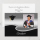 An elegant graduation party invitation with a silver-like appearance. The silver and black sections on the front are separated by a unique, curved border. The photo and all text are easily changed by using the template. Selecting “Personalize this design” offers you several edit options to easily change the text (wording, plus type font, color, size, position) and to edit the design elements. You may also want to scroll down to the section “Transfer design to a product” for a few suggestions about other items this design can be used on.