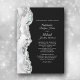 Bröllopet bjuder använda en söt gräns av faux agate i tonerna silver, grått, vitt och en aning vattenblått. Gräns står mot den svarta bakgrunden i högerna, som innehåller er anpassningsbar, även i silver. Baksidan av inbjudan är helsvart. Elegant, med bara en höger av minimalism.