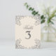 Kort för elegant, krämt beige bord med högdagrar för söt silver. Det här elfenbensbeige bröllop bord-kortet är enkelt att anpassa för din händelse genom att helt enkelt välja orangen "Anpassa det!" för att börja lägga till din händelseinformation, typsnitt stil, typsnitt storlek & färg och text. Observera att alla kort- och inbjudningssymboler som du hittar på Zazzle är tryckta bilder utan egentliga juveler, bogar, upphöjda, präglade eller tillagda delar eller delar.