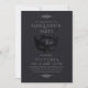Snyggt Modern Masquerapartybjudan. Elegantens handskrivna kalligrafi i kombination med ett modernt teckensnitt på en svart bakgrund kompletterar varandra och ser harmonisk ut samtidigt.