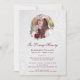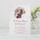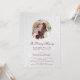 Elegant silver blommigt fotominnesmeddelande/firande av begravningsinbjudan med vattenfärg röd och rosa ros och baby utandningsblommor med botanisk bakgrund i silver.