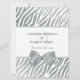 Elegant silver och vita zebra tryck bröllopsinbjudningar med en chic silver grått båge. Anpassa genom att lägga till monogrammet och namn i bruden och trimmen. Platt tryckt bild, INTE metallisk. Om du vill lägga till ett metallskal väljer du en papper typ av silver eller pärlor.