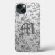 Elegant silver brocade mönster med ett dimensionellt utseende och ett gammalt engelskt monogram som tillval