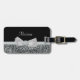 En elegant silver grått-cheetah skriver ut bagagemärkning med en helt ren vit buk som är förskönad med söt pärlor och ett rosetteband i mitten. Alla giriga flickor som kärlek silver och svarta skulle få kärlek att lägga till namn till denna chic och snyggt djurtrycksdesign. Platt utskriven bild, inte egentligt menyfliksområde.
