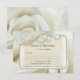 RSVP-kort för matchande inbjudningar med en modernt stilren design med silverblommiga virvlar och små pärlor på en elfenbensfärgad rosbakgrund. På baksidan kan du låta målningen av rosen vara som den är, eller så kan du dölja detta lager i det avancerade designverktyget för att avslöja en randig silverguld design.