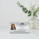 Visitkort med din egen logotyp och foto på en silvertryckt bakgrund. Vacker för en fastighetsmäklare, försäkringsmäklare eller annan professionell.