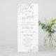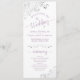 Det här vackra bröllopsprogrammet har en elegant med dammig lila- eller lavendeltext på vit bakgrund och lacy silver grått-faux-folie och snurrar i hörnen. Rubrikerna är skrivna i finare-manusjografi, och det finns utrymme för din ceremoni och bröllopsfest, samt ett kort-tack för dina gäster. Underbart sätt att välkomna dina vänner och din familj till bröllop firande.