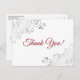 Dessa vackra vykort är ett underbart och ekonomiskt sätt att tacka gästerna i bröllop för att de är en del av er speciella dag. På framsidan finns faux-folier i finare och snurrar i hörnen med skript med skript och texten "tack" på en klassisk vit bakgrund. Baksidan har plats för en kort-anteckning och namnteckning. Snyggt slut till en ny början.