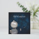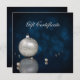 En julillustration i elegant: en silver-jul boll och vita pärlor på mörk blått bågbotten.