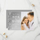 Inbjudan till Elegant Silver Photo Bröllop spara datum innehåller ett elegant-vitt skript på en silver-glitter bakgrund med ditt favoritfoto. Perfekt för bröllop, födelsedag, årsdag, Bat mitzvah, babyduschar, party och firande. Designad för dig av © Evco Studio på www.zazzle.com/store/evcostudio