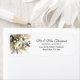 Bröllop-returadressetiketten visar en elegant jul-, vintervattenfärg för blommigten med vita blommor, guld, holly löv och evergreens från silver.