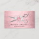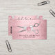 Moderna affärskort och eleganter för hårstilister med faux silver sax, rosa och vit ros, faux rosa ros guld bakgrund och elegant calligrafteckensnitt.