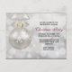 Vykort för julfestinbjudan med magisk helgdag. Med en silver-jul-boll med snöflingor-dekorationer och avslutat av med en söt silver-båge. Bakgrunden är en illustration av ljus vid silver med elegantens stjärnor spridda över hela världen.