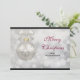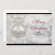 Ett platt julkort som kan anpassas med ditt namn och meddelande på baksidan. Designat med en magisk julkomposition. Har en silverfärgad julgranskula med snöflingdekorationer och avslutas med ett vackert silverband. Bakgrunden är en illustration av silverfärgade bokeh-ljus med eleganta stjärnor utspridda överallt.