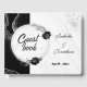 Elegant silver och svarta blommor på marmorbakgrund botaniska gäster bok. Uppgifterna om glitter simuleras
