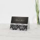 Elegant silver och svart damask med diamant hjärta tack kort