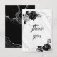 elegant silver och svarta blommor botaniska tack kort
