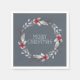 Silver och God jul-napor med rött frisk krans, med grått som trendbakgrund, kommer att ge ge till er jul party som ett elegant och modernt tema. Anpassa texten med ditt eget favoritfestive hälsning. Om du vill matcha leveranserna från party kan du checka ut de andra produkterna i den här samlingen.