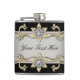 Elegant personlig silver, svart eller guld-spritdryck eller dryckeskolv. Denna vackra svarta och guld-kolv kan vara personlig med text, och du kan byta färg!