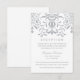Elegant vintageinspirerad bröllopsmottagningskortdesign med en utsmyckad dekorativ kantdesign med metalliskt silver / grå glansig yta och anpassad text som kan anpassas för firandet.