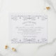 Elegant och glamourös, denna spara-datum-inbjudan utan foto har skimrande silverglittrig damaskbård högst upp och längst ned mot en krispigt vit bakgrund med koordinerad silvertypografi. Den utsmyckade rullverket ramar in och ger den en formell, lyxig känsla som passar svarta-tie- eller vinterbröllop. All text är helt anpassningsbar.
