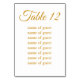 Personalize this simple golden calligraphy script table number sign. Add the names of up to eight guests. Add the table number at the top. This is smart stylish way to organize your event guest seating. This faux golden tan color and elegant typography match my 50th wedding anniversary collection. Browse my collection for matching golden 50th wedding anniversary table decor, signs, invitations and commemorative personalized glassware.