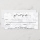 Elegant grått marble presentcertifikat som innehåller "en gåva åt dig" med dekorationer i ett handskript. Baksidan har presentcertifikatsformuläret tillsammans med din affärskontaktinformation. Den här enkla och minimalistiska utformningen är underbar för en konstgjord konstnär, hårstilist, lashtekniker, skönhet/nagelsalon eller något kvinnoägt företag.