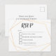 Ett bekvämt sätt för dina gäster att få OSA till dina inbjudningar är genom vykort med dina adress-uppgifter redan där, så att de bara kan fylla på framsidan och skicka tillbaka den till dig. Den här designen har en guld-geometrisk ram av elegant med klassisk svart text. Text är lätt att personlig och färgen kan ändras om du vill koordinera med temat bröllop genom att klicka för att anpassa ytterligare.