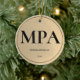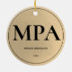Ett prydnadsämne för ett MPA-student med guld-ton (non-foil) och svart färg. Det visar graden, namn och året. Anpassa bara den här prydnaden, lägg till den i din vagn och se till att du har en viktig prestation. Elegant Simple Guld MPA Studenten Ceramic Ornament Holiday Design | ©Melissa Patton - Designer