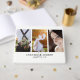 Personlig Elegant Photo Bröllop Guest Bok med svartvit och grått monogram initialt, brud och groom namn och bröllop datum. Det finns tre foton på framsidan och ett större foto på baksidan.