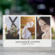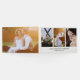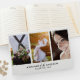 Personlig Elegant Photo Bröllop Guest Bok med svartvit och grått monogram initialt, brud och groom namn och bröllop datum. Det finns tre foton på framsidan och ett större foto på baksidan.