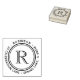 Add a personalized finishing touch to cards, invitations, announcements and thank you notes with an elegant round return address rubber stamp. All text on this template is simple to customize. The design features an elegant classic typography monogrammed initial in the center with stylish modern name and address in a circle.