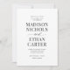Den här eleganten och den moderna bröllopsinbjudan innehåller unika calligraphy-skript parade med snyggt. Systemet för svartvit färg är perfekt för alla evenemang, formella eller avslappnader. Lägg till fotot på baksidan av kortet för en speciell personlig.