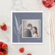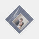 Lägg till en personlig touch till din bröllopsfest med denna eleganta skräddarsydda servett med foto. Designad med en romantisk blågrå bakgrund, delikat vit botanisk illustration och utrymme för ett favoritfoto och bröllopsdatum, är det en vacker blandning av modern och naturinspirerad design. Perfekt för rustika, trädgårds- eller utomhusbröllop och enkelt anpassningsbar för att matcha ditt tema.