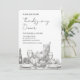 Värd för din Thanksgiving på stil med denna eleganta skriptinbjudan till middag. Med en sofistikerad handstilsfont kombinerad med detaljerade svart-vita skördeskisser av pumpor, vindruvor, vin och ett festligt dukat bord, finner denna design den perfekta balansen mellan modern elegans och rustik charm. Perfekt för formella Thanksgiving-middagar, Friendsgiving-firanden eller mysiga familjesammanhang.