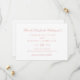 Krispt och elegant, denna typografiska spara-datum-design har graciös kalligrafi-skrift och klassisk serif-stil i rosa guld på en ren vit bakgrund. Den återhållna färgpaletten är en perfekt komplement till den rosa guld-färgade samordnade sviten, och fungerar vackert för trädgårds-, bal- eller destinationbröllop. Alla detaljer är helt anpassningsbara för att passa din fest.