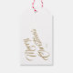 En festlig, guldbordad och vit skriftlig god jul presentetikett.