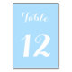 Skapa din egen anpassade, personliga, eleganta, stilrena, vackra vita typografi skript, modern chic blå och vit, högkvalitativt bordskort. Perfekt för bröllop, brudvisning, middagsfest eller annan speciell tillställning. Skriv bara in bordnumret för att anpassa.