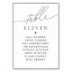 Elegant och modern bord nummer och gästnamn skylt med elegant skript och klassisk typografi. Perfekt för bröllop eller din nästa speciella tillställning.