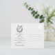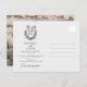 Denna vackert designade bröllop-vykortsinbjudan erbjuder ett romantiskt och modernt alternativ till traditionellt inbjudan. Framsidan har en tidlös svartvit layout med en rolig duva och blommigt vapensköld, monogram för personlig och typografi för elegant som belyser parets detaljer om namn och bröllop. Ett handskript i stil lägger till en personlig och inbjudande beröring. Kortets baksida visar ett foto av paret som skapar en uppriktig visuell keepé för gästerna. Den här vykortsdesignen är perfekt för minimalistiskt, detaljerat, trädgårdsmässigt eller formellt bröllop och kombinerar sentimentalitet och sofistikering i ett kompakt format för snyggt.