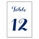 Skapa ditt eget anpassade, personliga, eleganta, stilrena, vackra marinblå typografi skript, modern chic marinblå och vit, högkvalitativt bordskort. Perfekt för bröllop, brudshow, middagsfest eller andra speciella tillfällen. Skriv bara in bordnumret för att anpassa.