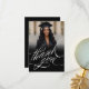 Fira din examen med stil med detta platta tackkort med sofistikerad typsnitts typografi som graciöst lyder "Tack" på framsidan. Visa ditt favoritfoto från examen för en personlig touch som fångar ögonblicket perfekt. Baksidan har utrymme för ett helt anpassningsbart meddelande för att uttrycka din hjärtliga uppskattning till vänner, familj och nära och kära. Tryckt på premiumkort med en snygg, modern design – detta kort är ett tidlöst sätt att säga tack.